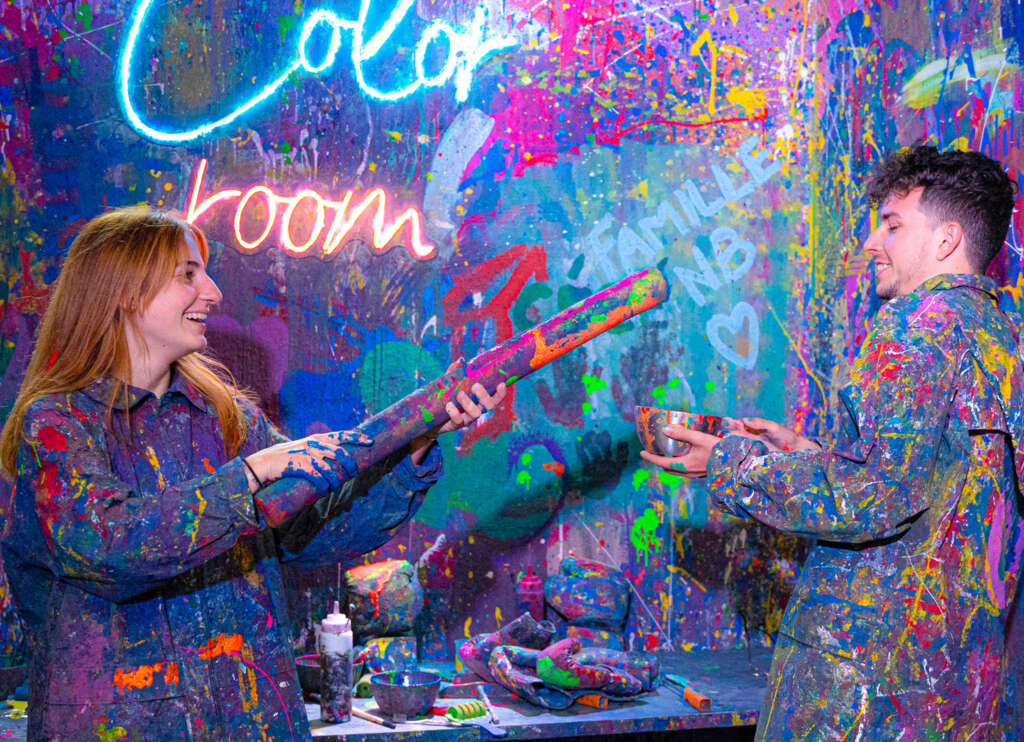 Lights off, energy on. In our Neon Experience, fluorescent paint glows to the rhythm of music and imagination. Under UV lights, every stroke becomes alive, every color vibrates, it’s art that dances in the dark. A radiant, immersive, unforgettable journey.